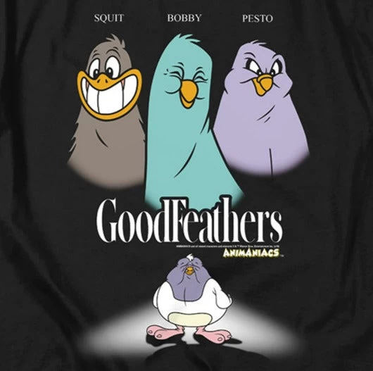 Represent your favorite trio of gangsters with this stylish Animaniacs Goodfeathers T-Shirt! The officially licensed design brings the snark and attitude of the Animaniacs to your wardrobe. Show your love for these comedy icons with this perfect combination of vintage flair and modern style!