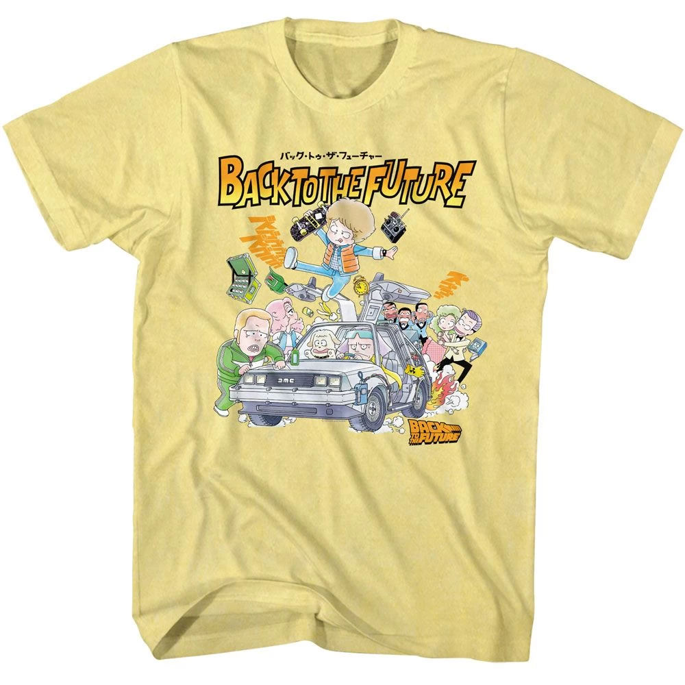 Show your love for the classic Back To The Future movie with this fun t-shirt featuring iconic cartoon characters and their car! The vibrant colors and crisp design will make sure you stand out from the crowd. Show off your style and love for this classic movie!