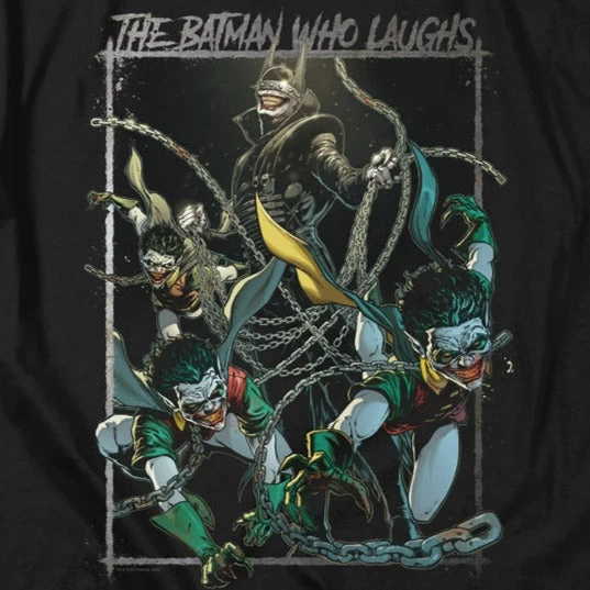 Experience the awesome power of the Batman Who Laughs with this striking T-Shirt! Show your unique style with this unique design and stand out from the crowd. Dare to be different and let your creative side shine! So what are you waiting for? Join the Bat-Family today!