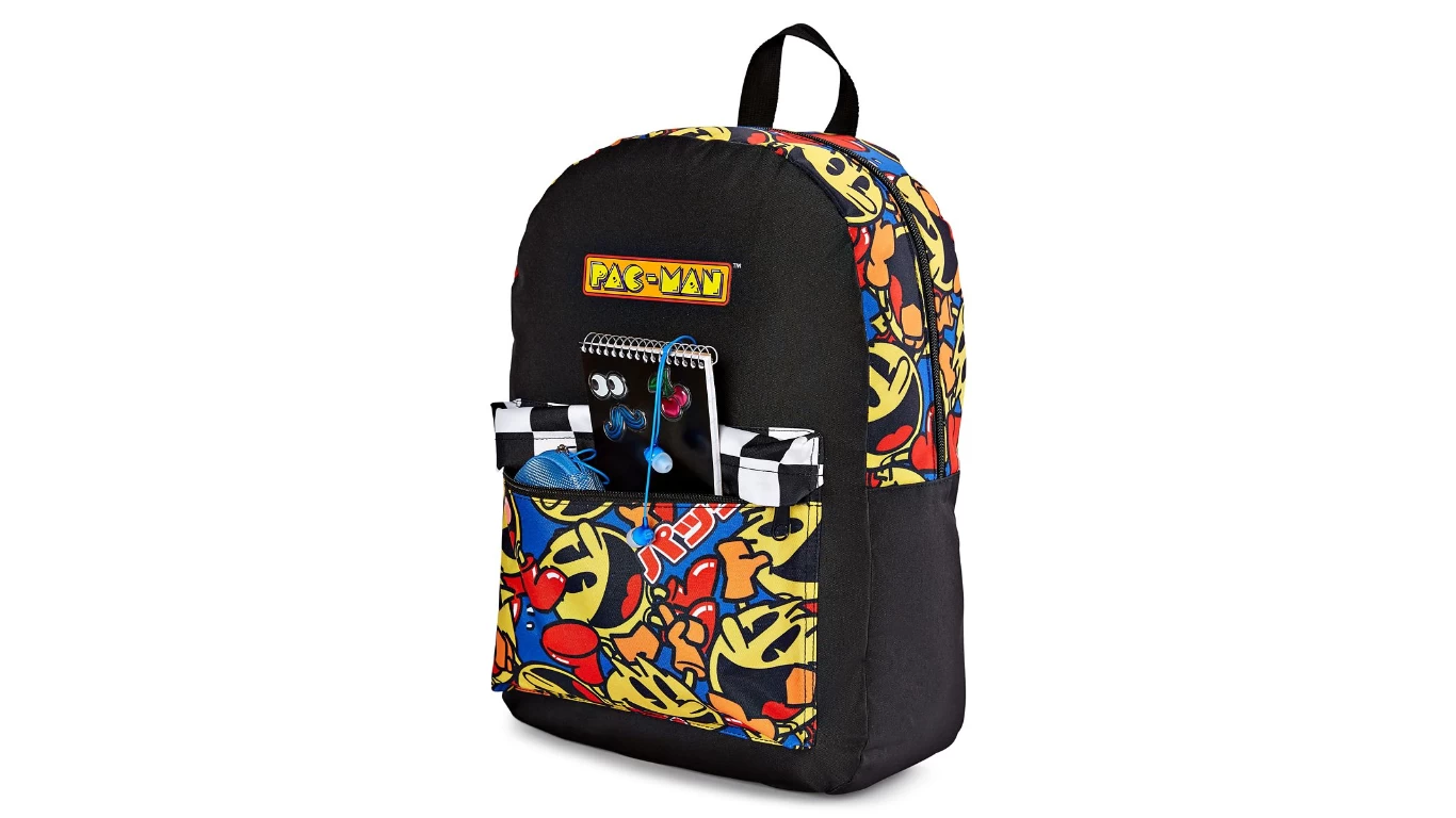 Nom nom nom your way to some serious style when you add this officialy licensed Pac-Man backpack to your look. This backpack features an outside zip pocket and internal sleeve so you can store all the pellets and fruit that you collect! There’s no better way to show your fandom for an arcade classic than with this officially licensed backpack.Â