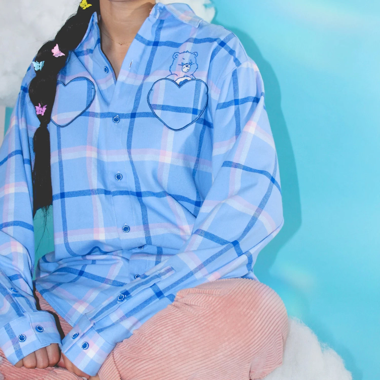 It’s okay to be grumpy sometimes, especially in our new Grumpy Bear Flannel. Featuring everyone’s favorite moody Care Bear, Grumpy Bear, embroidered above adorable heart shaped pockets, the classic Care Bears logo embroidered on the back, on colors inspired by the little bear himself. This is a must have for any Care Bears fan.