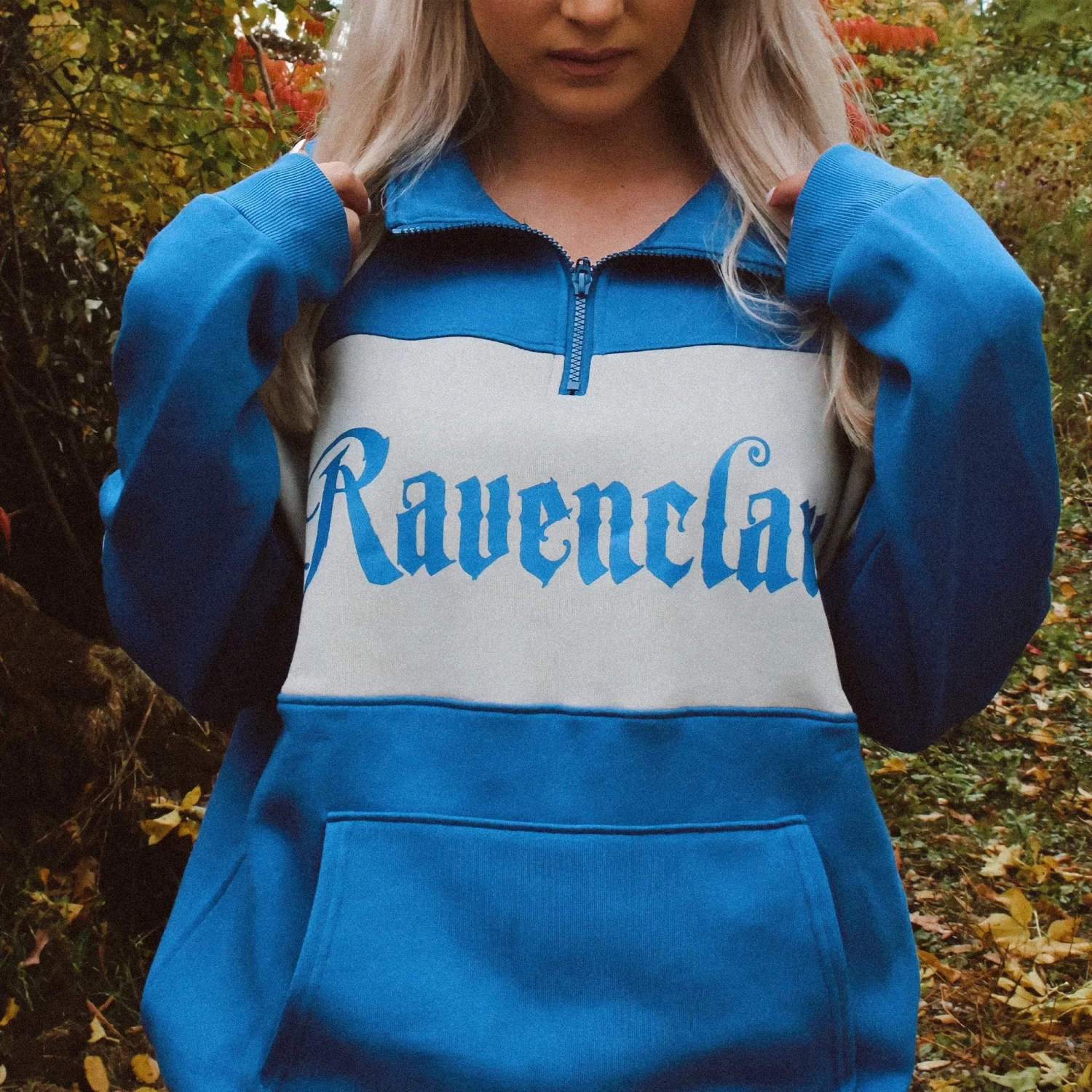Are you intelligent, witty, wise and creative? Looking to show off your RAVENCLAW™ pride? Our new unisex fit 1/4 Sweater has you covered! Featuring the HOGWARTS™ emblem on the front left chest and “RAVENCLAW™” across the front all in RAVENCLAW’s™ classic blue. The perfect magical addition for any Harry Potter fan.