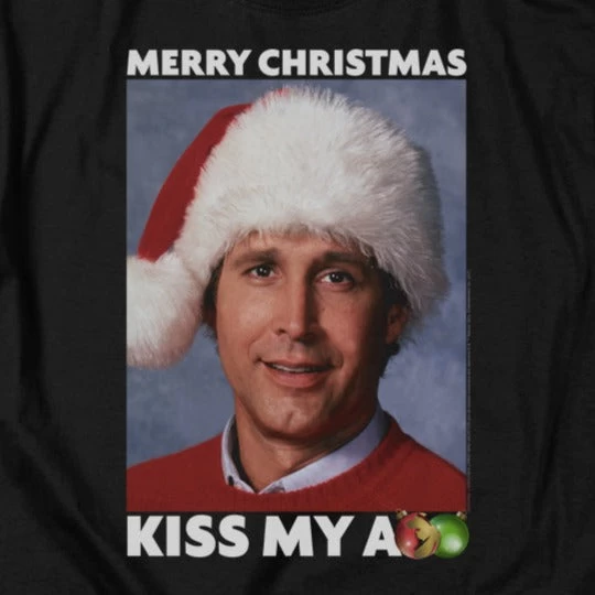 Spread holiday cheer wearing the iconic Christmas Vacation Merry Kiss T-Shirt! This comfy t-shirt celebrates the joyous season with the classic movie logo for a truly festive look. Enjoy a jolly holiday in style!