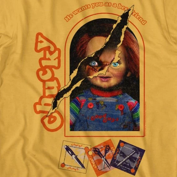 Show off your style with this stylish Chucky 2 Sides Box T-Shirt. Featuring a unique graphic on both the front and back of the shirt, this top is sure to turn heads. Crafted from quality material, this shirt is sure to last and make an impression. Be bold and get yours now!