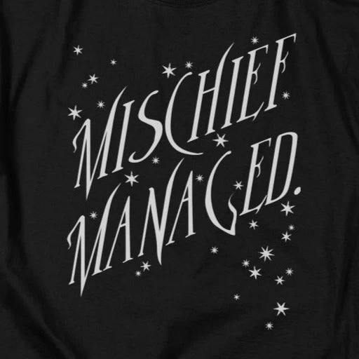 Are you a Harry Potter fan? Celebrate your fandom with this stylish Mischief Managed T-Shirt. Featuring the iconic phrase from the books, this T-Shirt is sure to proclaim your passion for all things wizarding! Express yourself with a piece of apparel that perfectly expresses your love for the magical world of Harry Potter.