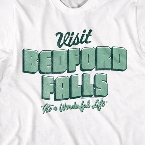 Illustrate your zest for life with this exquisite It’s A Wonderful Life Visit Bedford T-Shirt! Not only does this classic design feature the iconic Bedford Falls, but the high-quality fabric ensures comfort and breathability. Show off your passion for the classic movie while feeling luxurious.