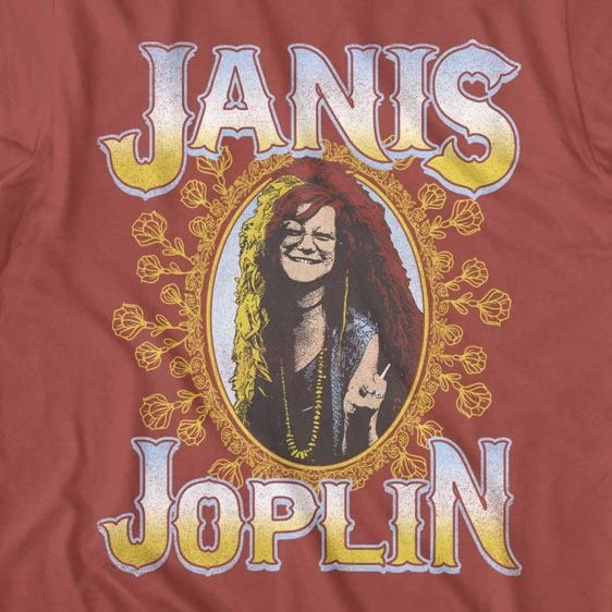 The Janis Joplin Floral Frame T-Shirt adds an edgy twist to your wardrobe! Featuring a floral frame design, this unique t-shirt pairs perfectly with jeans and a leather jacket for a classic rocker-chic style. Show off your bold style in this statement-making top!