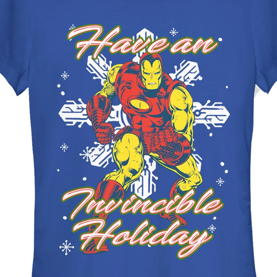 Let’s hope Santa Claus put you on his Nice List this year so you can get your hands on the officially licensed Marvel Iron Man Invincible Holiday Juniors’ Graphic T-Shirt! Start your holiday off right with this awesome Iron Man tee that portrays Tony Stark framed by snowflakes and the text “Have an Invincible Holiday” in cursive script across the front, for that perfect Christmas cheer!