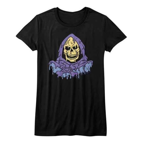 Unleash your inner warrior with this Junior’s Masters Of The Universe Melty Skeletor T-Shirt! Featuring an awesome print of Skeletor’s face “melting” into a colorful backdrop, this T-Shirt will take your fandom to the next level. Show your strength and courage with this stylish and on-trend T-Shirt!