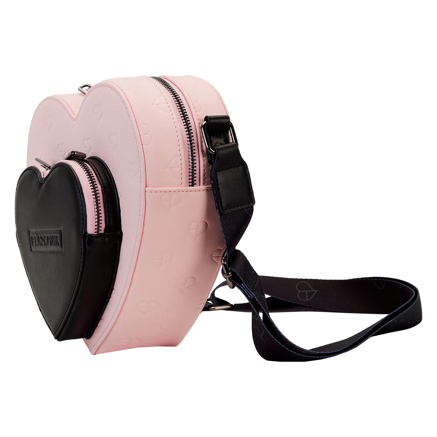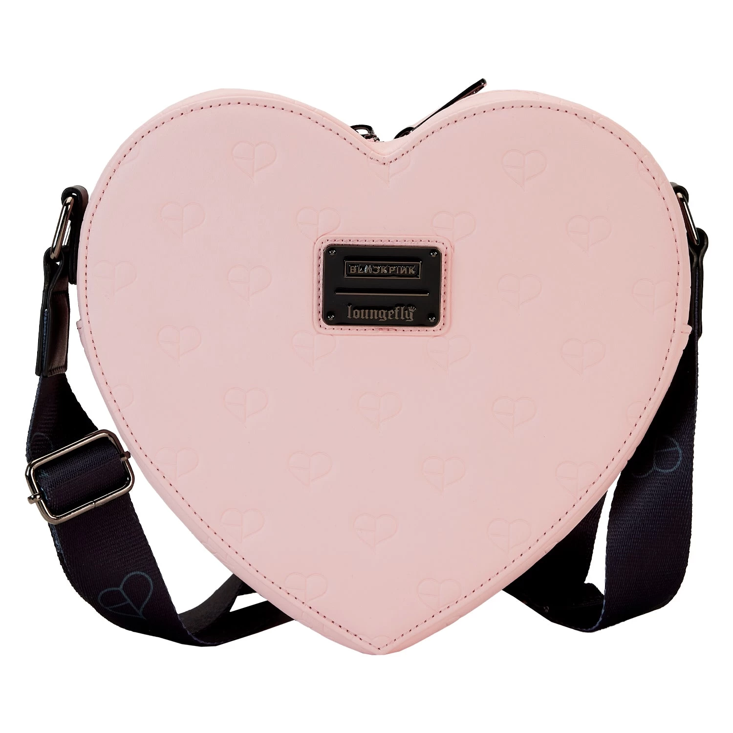 Enhance your look with this stylish and unique Loungefly BLACKPINK AOP Heart Crossbody. Crafted with an adorable heart-shaped design and an all-over print of hearts, it features a front pocket in the shape of a heart for added charm. The adjustable strap makes it comfortable and versatile for any look. Fall in love with this bag and make a fashion statement!