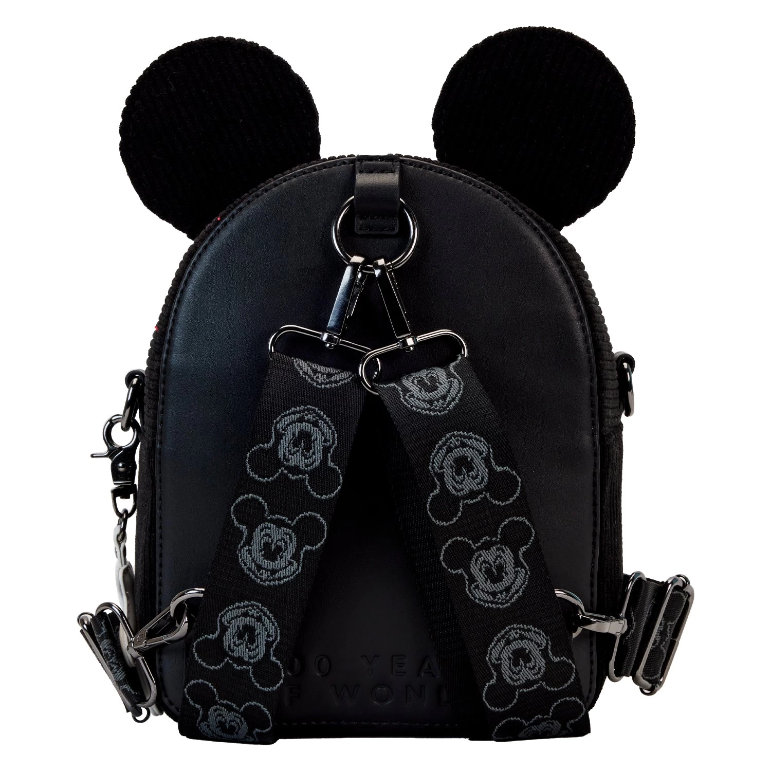 Discover a timeless style with Loungefly’s Disney D100 Corduroy Convertible Crossbody! This chic mini backpack is crafted with eye-catching corduroy fabric and converts to a crossbody bag in seconds. Special features include a debossed faux leather charm, and printed details to complete the look. Add this unique style to your wardrobe today!