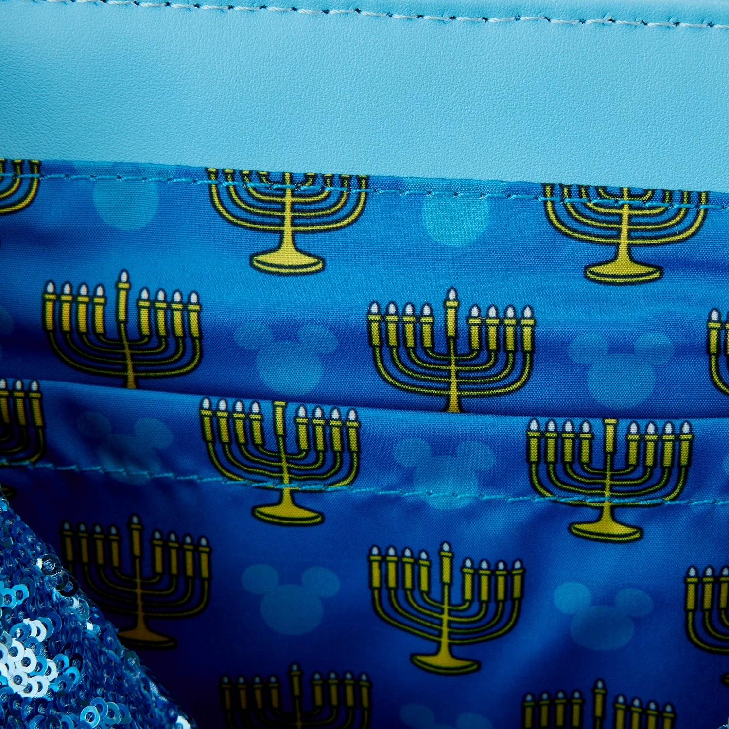Celebrate the Festival of Lights with style with this enchanting Loungefly Disney Minnie Hanukkah Dreidel Crossbody! Perfect for everyday use, this bag features an adjustable strap, 3D bow and molded metal charm, along with applique, gold foil and printed details. The strap can also be easily taken off, so you can use the handle as a chic handbag. Spread some light this season with this exceptionally unique and stunning sequin accessory!