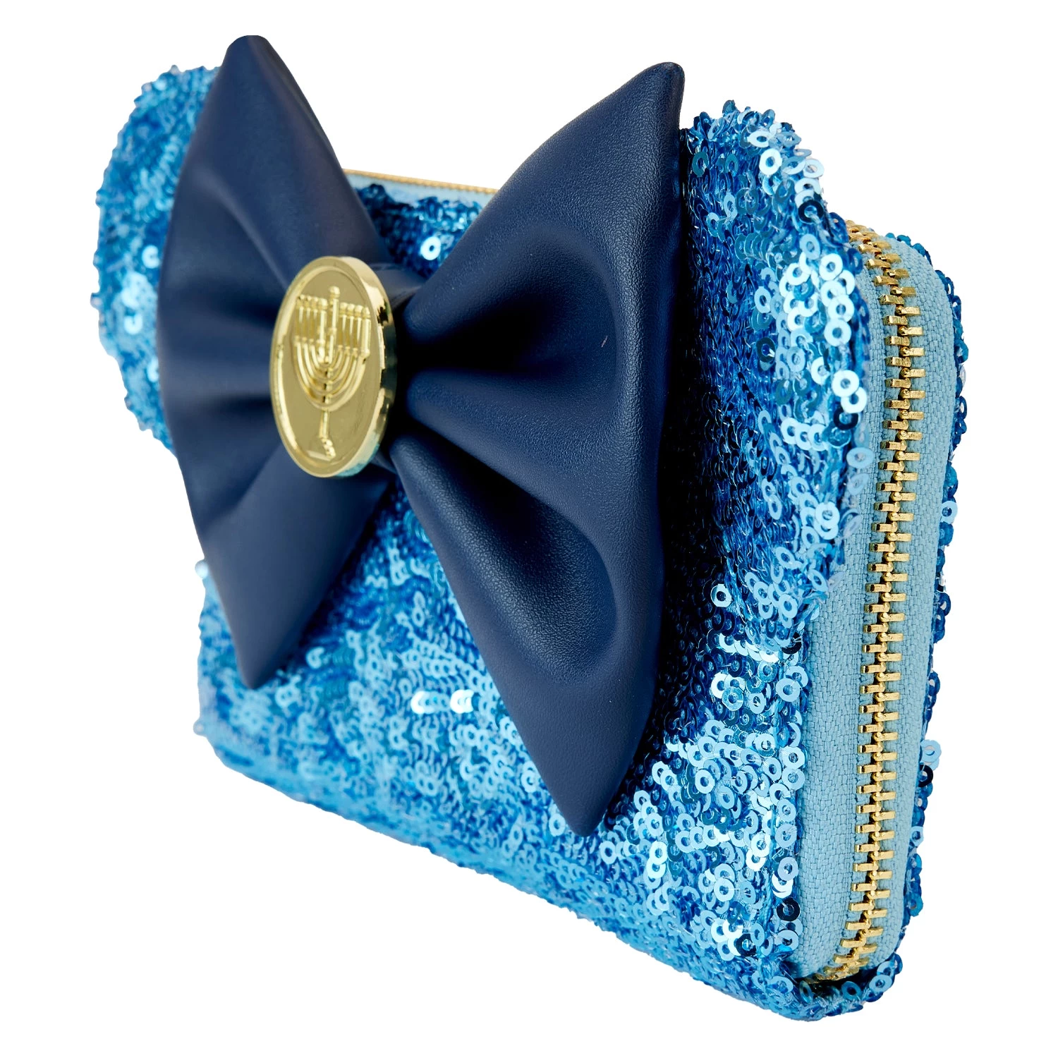 Brighten your holiday season with this beautiful Hanukkah-themed design! This Loungefly Disney Minnie Menorah wallet features a 3D bow, applique, molded metal charm and printed details that will bring joy to every occasion. Carefully crafted for your convenience, it includes a zip closure with ID pocket and cardholders to hold all your essentials. Make memories with this stylish sequin accessory!