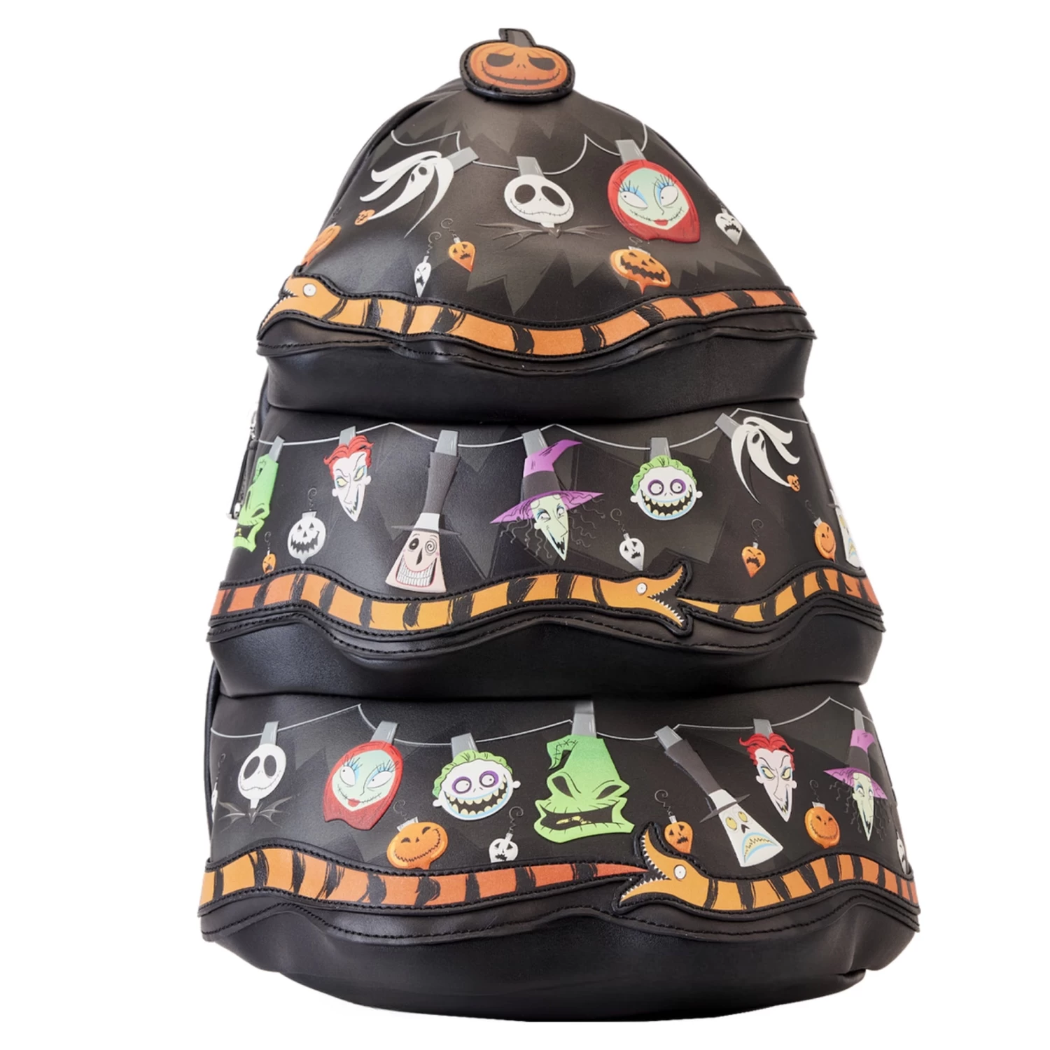 Light up your style this Christmas season with the Loungefly Disney Nightmare Before Christmas GITD Christmas Tree Figural Mini Backpack! With glow in the dark lights featuring all your favorite characters from the movie, as well as applique, debossed and printed details, you can show your festive spirit in style. Its adjustable padded straps and interior pocket offer comfort and convenience, and it’s uniquely shaped to look just like a Christmas Tree. Perfect for all fans of the classic movie!