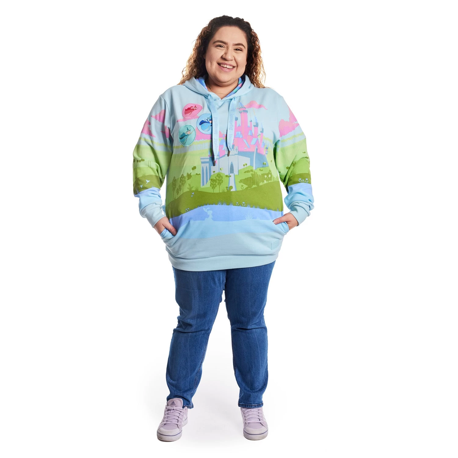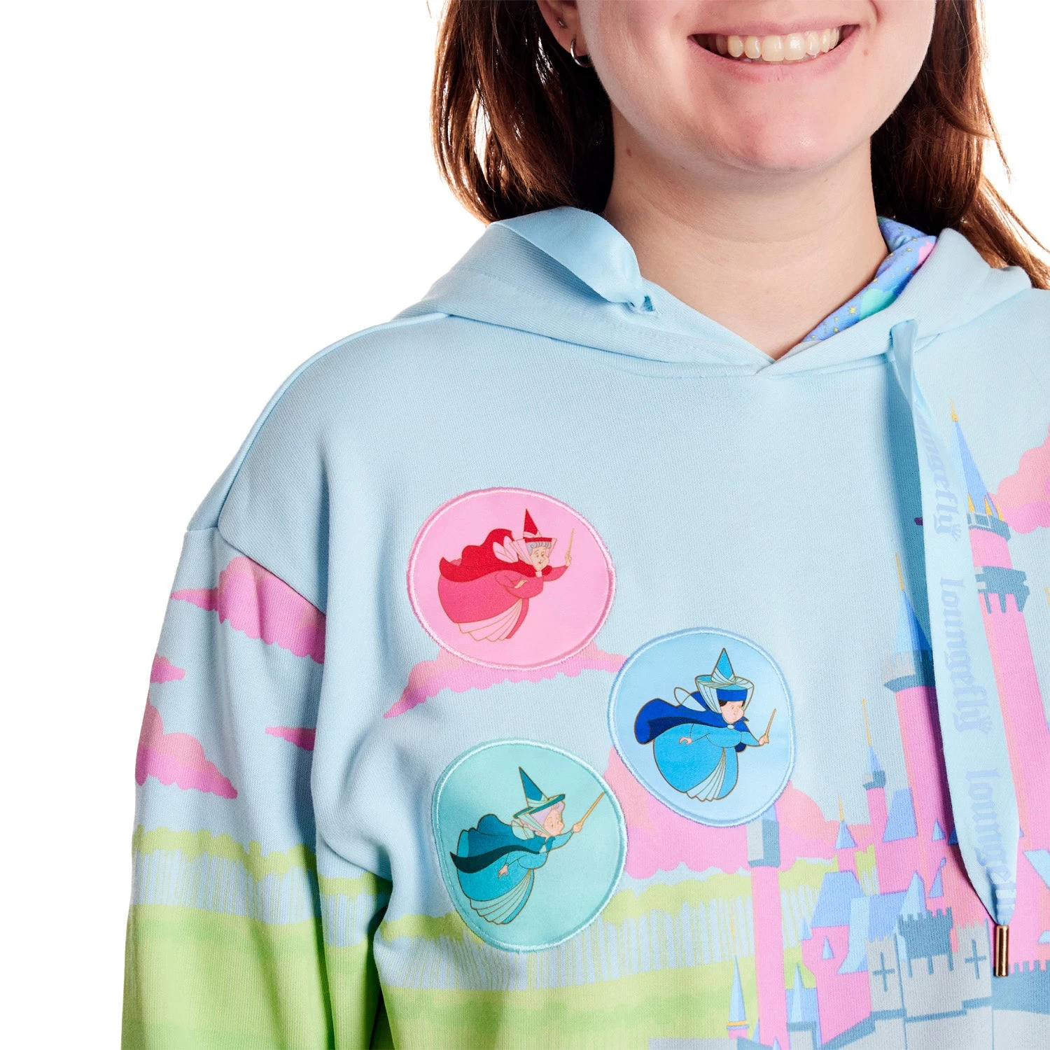 Be the envy of all and make a statement with this Loungefly Disney Sleeping Beauty Castle Unisex Hoodie! Featuring a classic design of the Fairy Godmothers and lanyard drawstrings, you’ll keep warm with style! Look no further for a timeless piece to show your Disney pride. Order yours today!