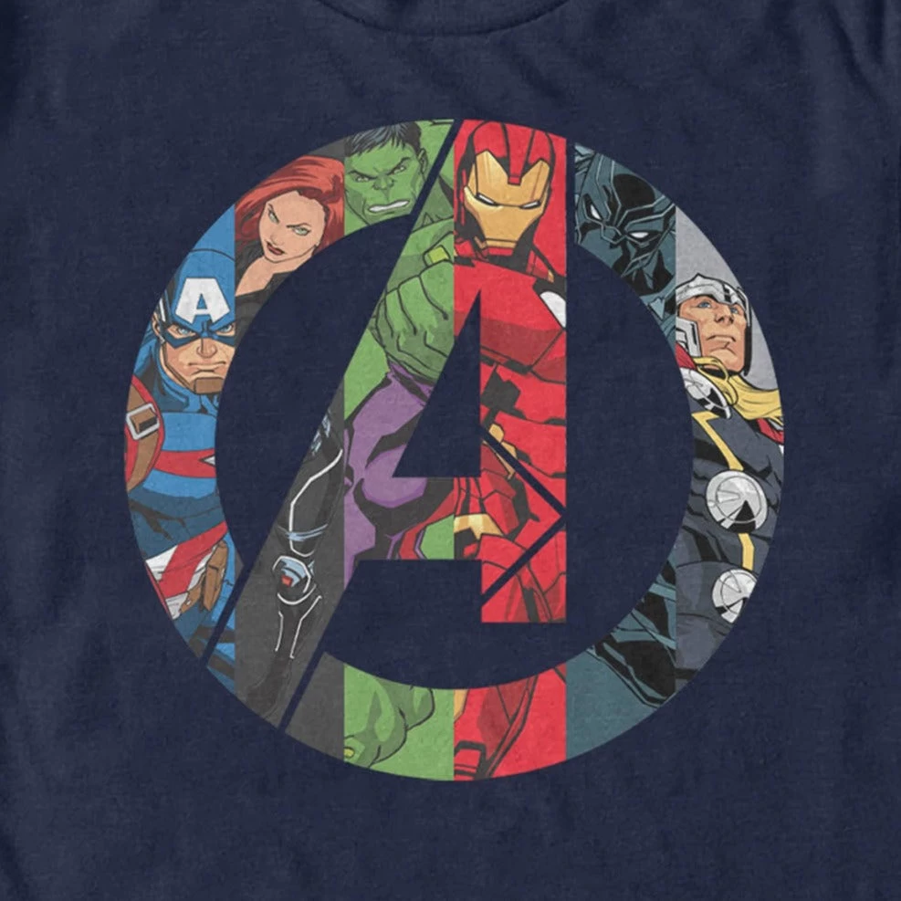 If Marvel comics fill your bookshelf, then let Marvel styles fill your closet too with the awesome new Marvel Avengers Hero Filled Logo Men’s Graphic T-Shirt! This fun new Marvel tee, perfect for your favorite comic book lover, features the Avengers logo filled in with Captain America, Black Widow, The Hulk, Iron Man, Black Panther, and Thor. Grab some new Marvel apparel today and show some love for all your favorite superheroes!