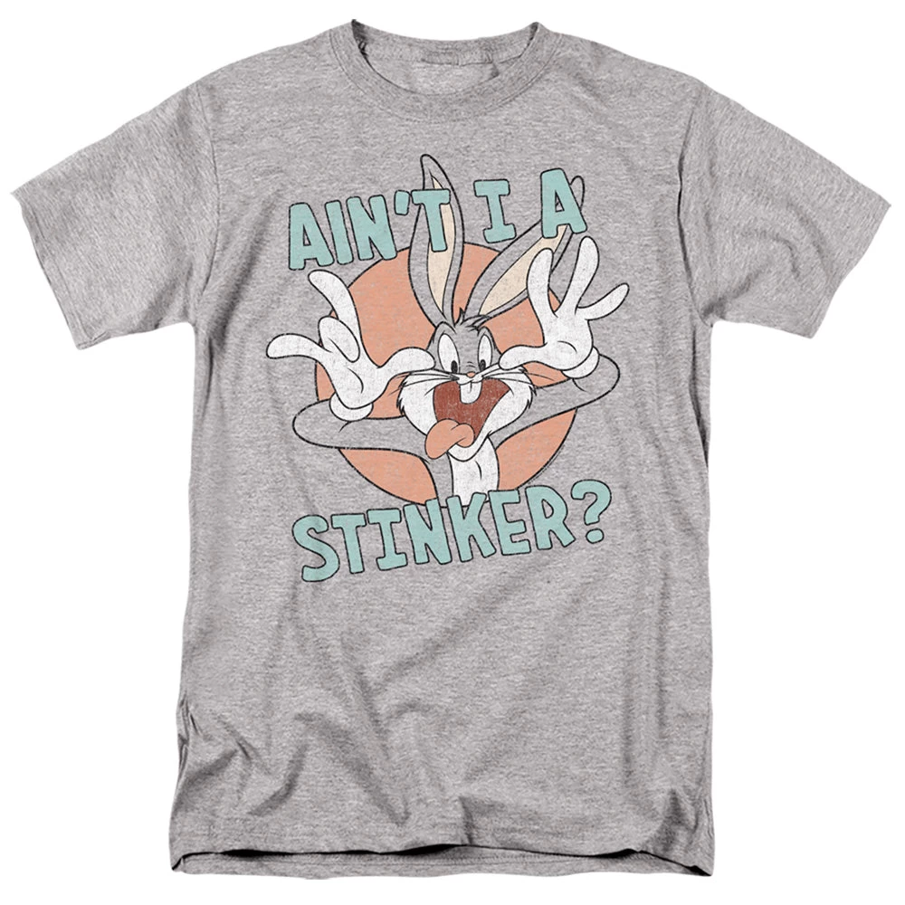 This men’s Looney Tunes graphic t-shirt features the classic Bugs Bunny printed on the front with his classic quote “Ain’t I a Stinker?” A perfect gift for any Looney Tunes fan!