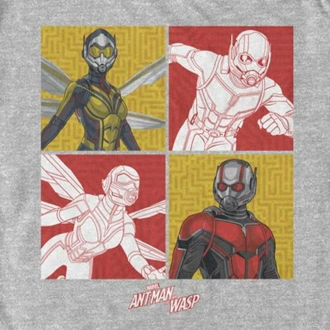 Cassie knows that her Dad needs someone to “watch his back” so she is happy that he has the Wasp on his side and the Marvel Ant-Man and the Wasp Character Panels Men’s T-Shirt on his back! Profiles of the Wasp and Ant-Man are featured in red and yellow panels on this Ant-Man and the Wasp tee.