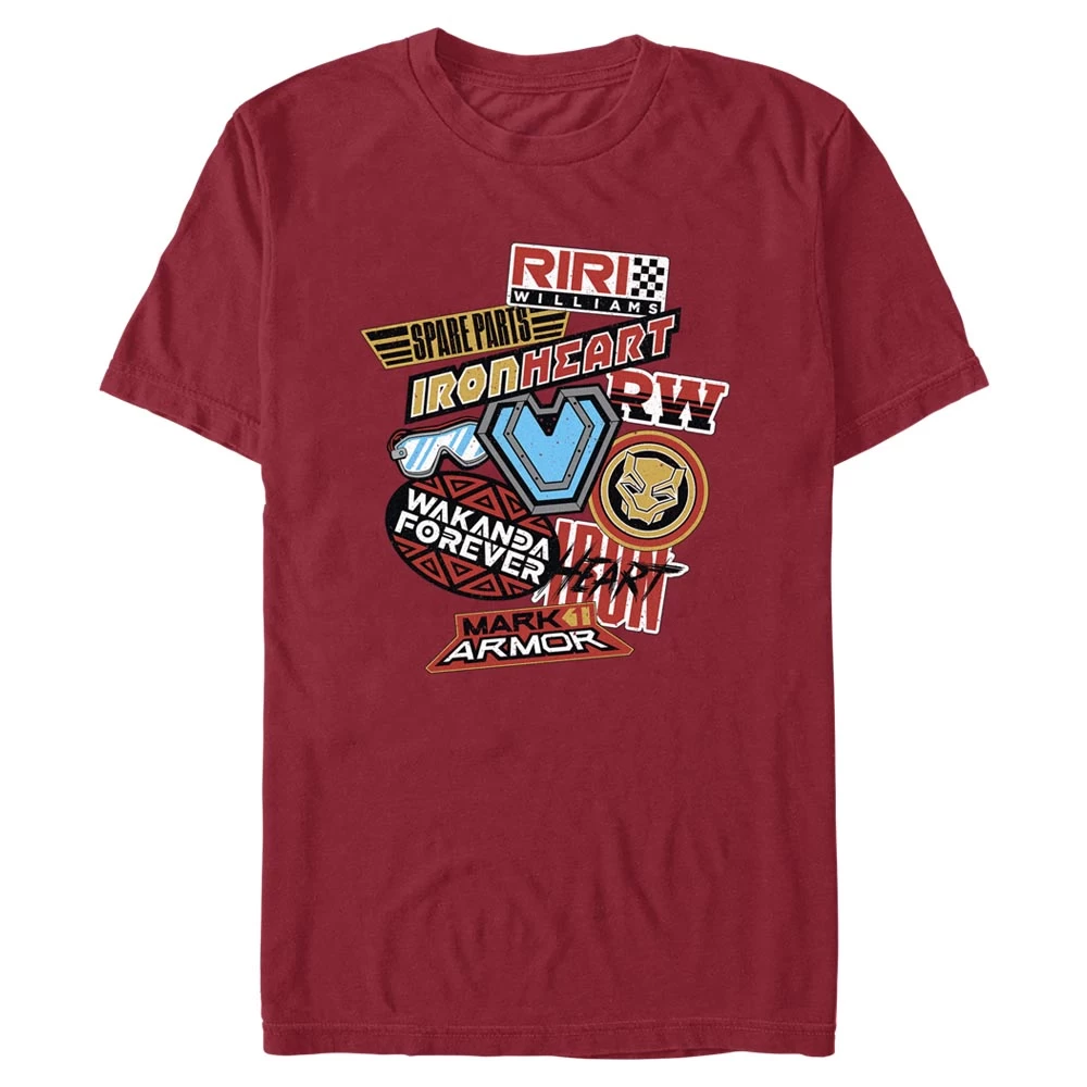 Join the Wakandans in the wake of King T’Challa’s death as they band together to fight to protect their kingdom from outside world powers in the powerful sequel to Black Panther, Black Panther: Wakanda Forever, with exciting new officially licensed apparel for the whole family from Marvel! This new Men’s Black Panther: Wakanda Forever Logo Stickers Graphic T-Shirt features various logos from the movie such as “Wakanda Forever,” “Riri Williams,” “Ironheart,” and more. Fight for Wakanda in style with these cool new designs!