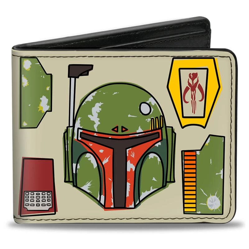 This awesome men’s bi-fold wallet is made from premium vegan leather. It measures 4.0×3.5×0.5 Inches, and features the standard billfold, 5 card slots, and windowed ID holder. The logos are applied using advanced printing technologies, so the wallet will still look good after years of hard use. This product is Made in the USA by Buckle-Down, Inc. and Officially Licensed by Star Wars.