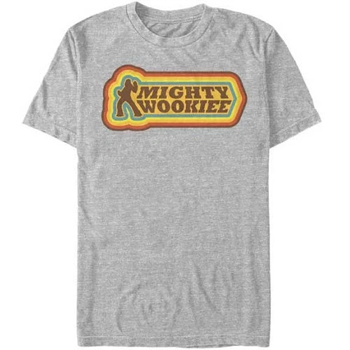Is there anything more groovy than Chewie’s “shag carpet” look paired with the Solo: A Star Wars Story Retro Mighty Wookiee Men’s T-Shirt? Nope! A cool retro style decorates the text “Mighty Wookiee” across this cool men’s Star Wars shirt.