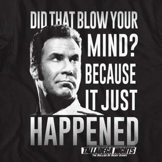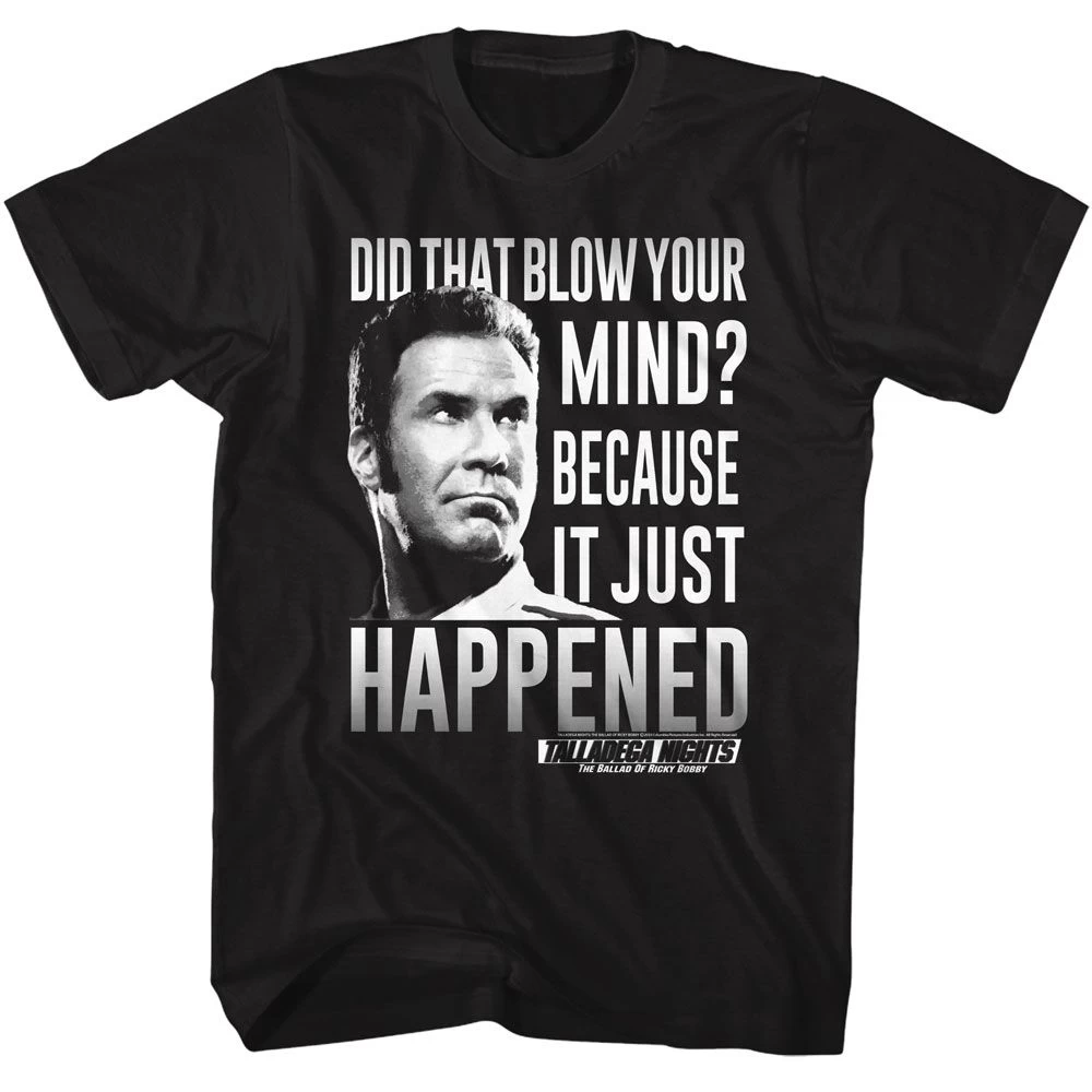Feel all the excitement of Talladega Nights with this stylish t-shirt! This soft cotton tee features the iconic ‘B because it Just Happened’ motto surrounded by a spectacularly designed graphic. Make a statement while getting ready for your next race!